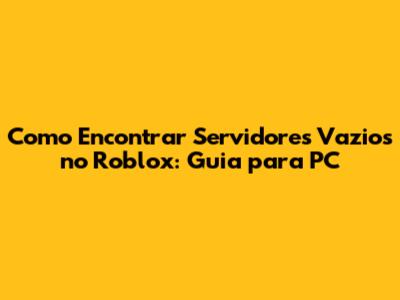 Como Encontrar Servidores Vazios No Roblox: Guia Para PC