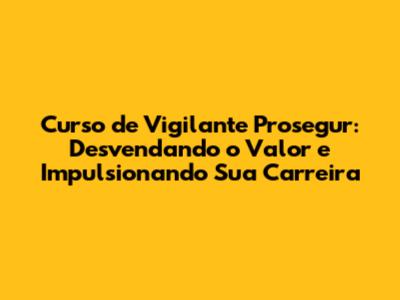 Curso De Vigilante Prosegur: Descubra O Valor E Invista No Seu Futuro