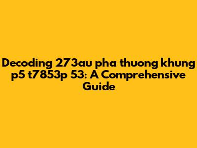 Decoding 273au Pha Thuong Khung P5 T7853p 53: A Comprehensive Guide
