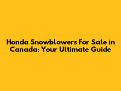 Honda Snowblowers For Sale In Canada: Your Ultimate Guide
