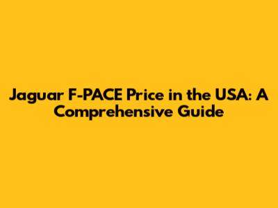 Jaguar F-PACE Price In The USA: A Comprehensive Guide