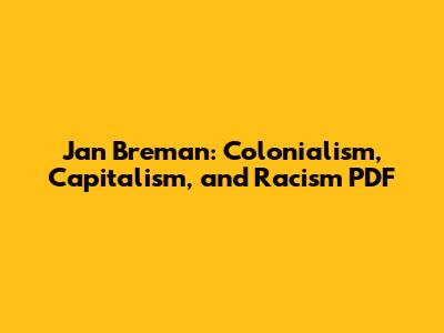 Jan Breman: Colonialism, Capitalism, And Racism PDF