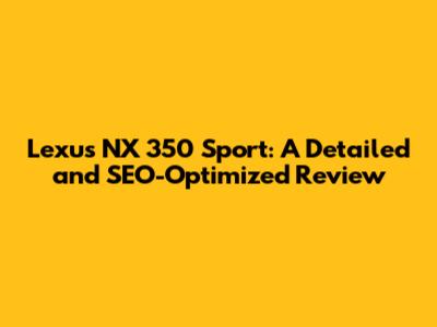 Lexus NX 350 Sport: A Detailed And SEO-Optimized Review