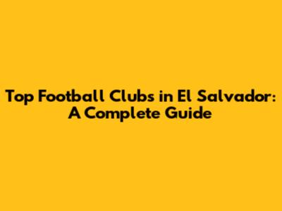 Top Football Clubs In El Salvador: A Complete Guide