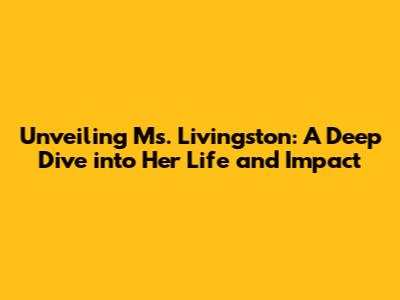 Hey everyone! Today, we're diving deep into the fascinating life of Ms. Livingston, a name that might conjure up different images depending on who you ask. But one thing's for sure: her story is worth exploring. We'll be taking a look at her journey, the things she did, and the legacy she left behind. Ready to jump in? Let's go! This article aims to explore the life and impact of Ms. Livingston, aiming to provide a comprehensive understanding of her contributions and the lasting effects of her work. We will also delve into her personality, the challenges she faced, and the impact she had on her community and beyond. The goal is to paint a vivid picture of a remarkable individual and highlight the importance of understanding her story.